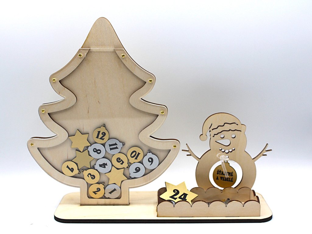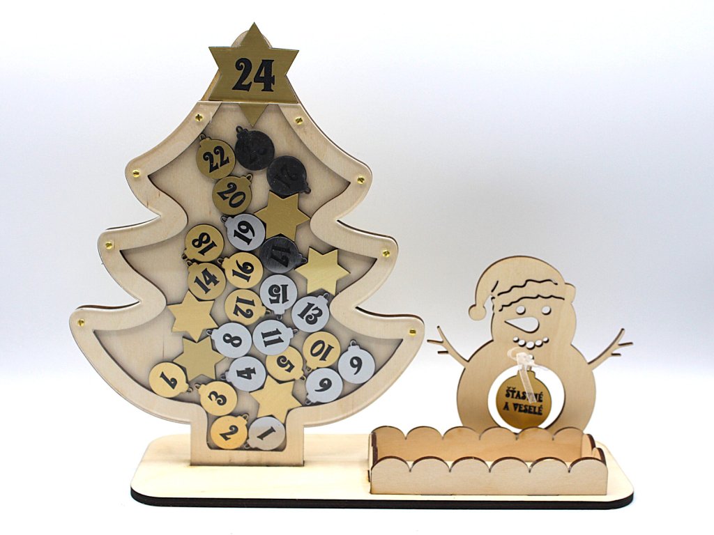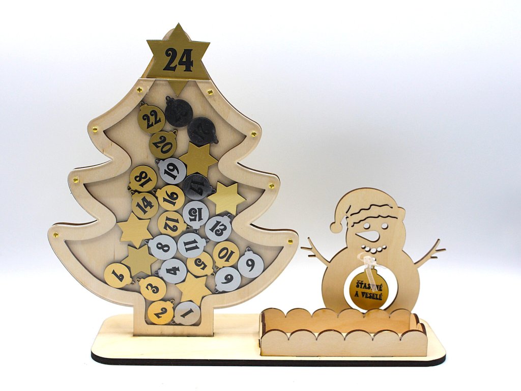 Zpříjemněte si adventní čas počítáním dnů do Štědrého dne. Vhazováním stříbrných a zlatých baněk počítáte dny . 24.12. završíte stromek hvězdou.Baňky jdou lehce vysypat ze stromku, takže kalendář jde použít i další roky.