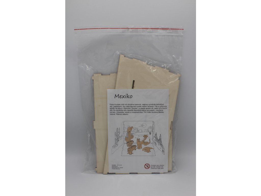 Rozměr: výška 19,5cm, šířka 30cm, hloubka 15cmStavebnice, nutno složit a použít lepidlo na dřevo (např. Herkules), které není součástí balení.