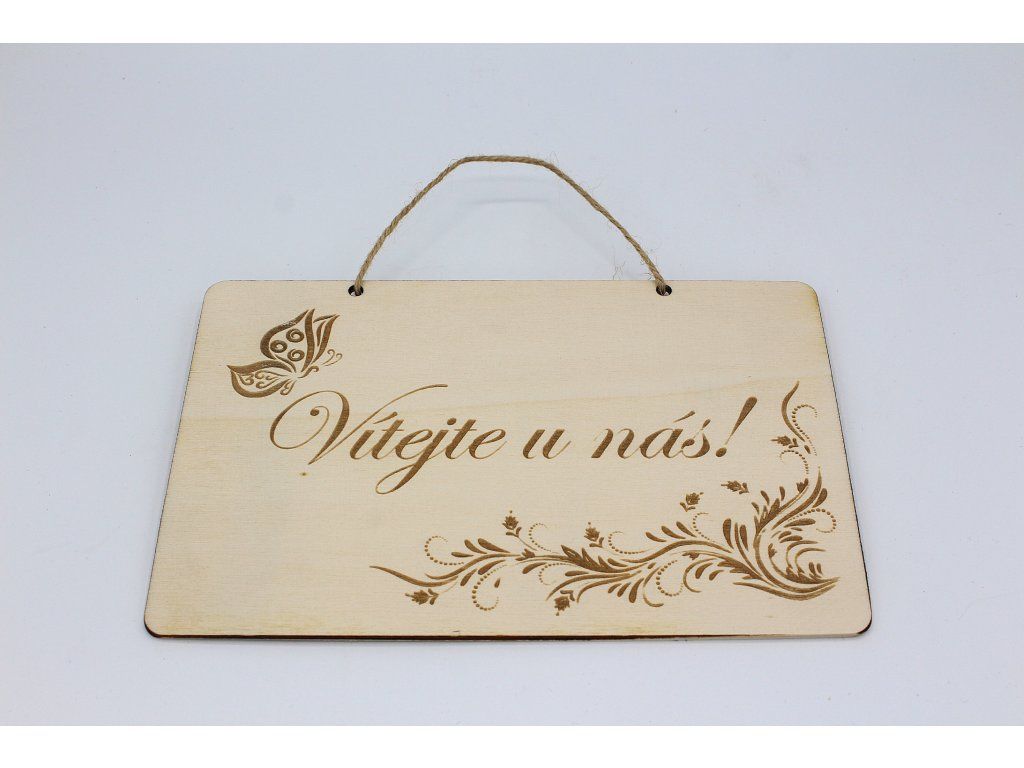 Dřevěná cedulka na dveře s gravírovaným textem a obrázkem, vhodná i jako dárek. Doplněná provázkem k zavěšení.