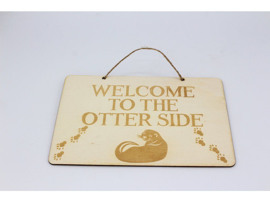 Dřevěná cedulka na dveře s gravírovaným textem a obrázkem, vhodná i jako dárek. Doplněná provázkem k zavěšení.