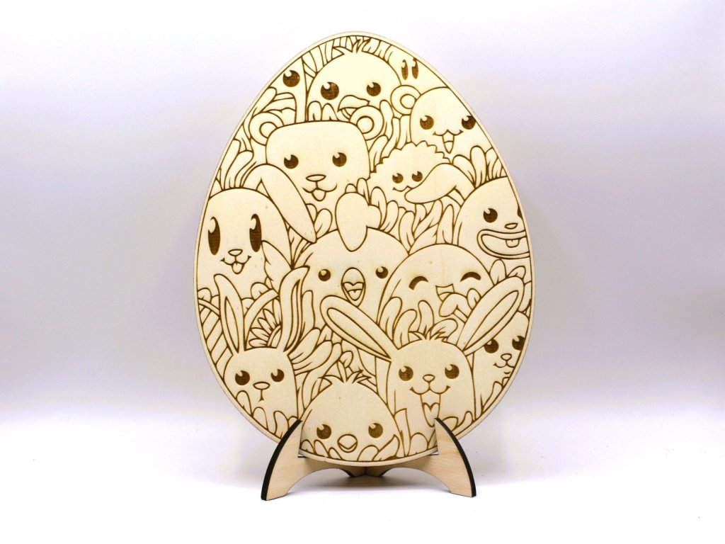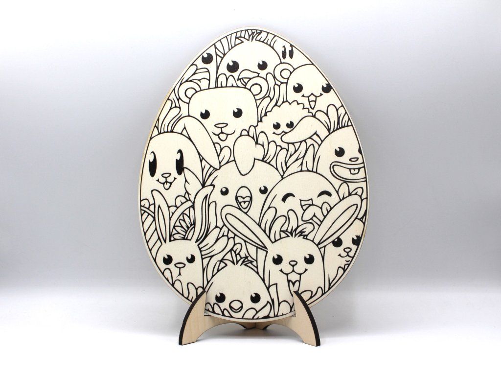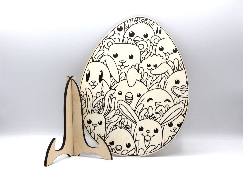Vymalovávat lze pastelkami, barvami, fixami,... Dodáváno i se stojánkem na vejce.