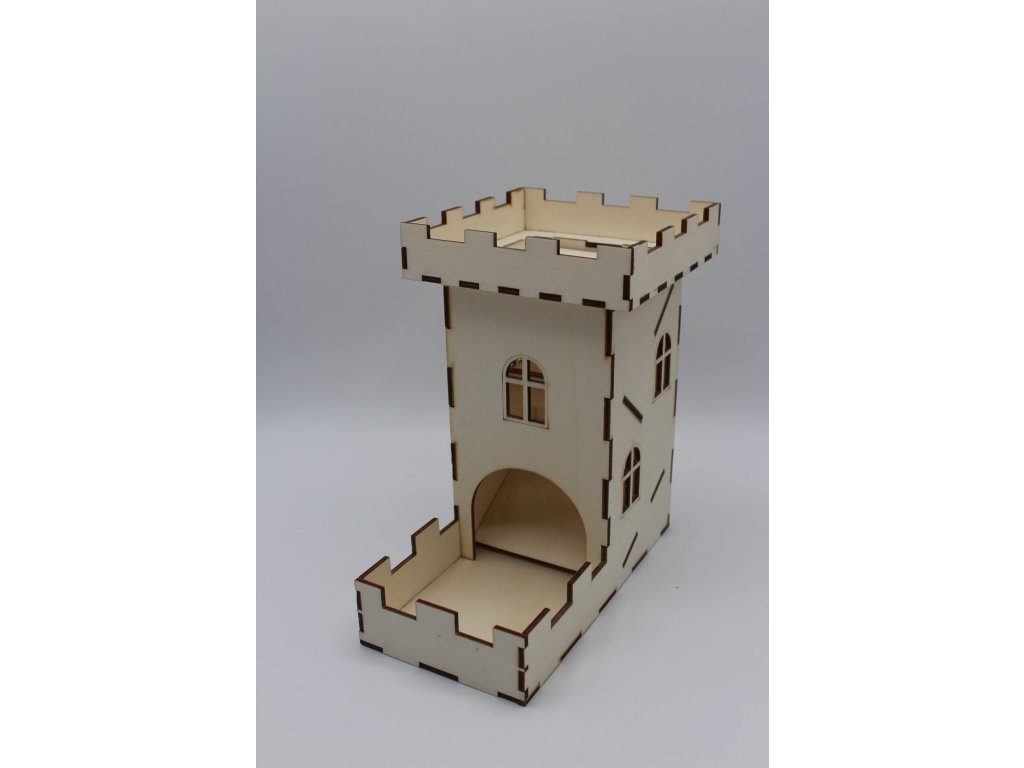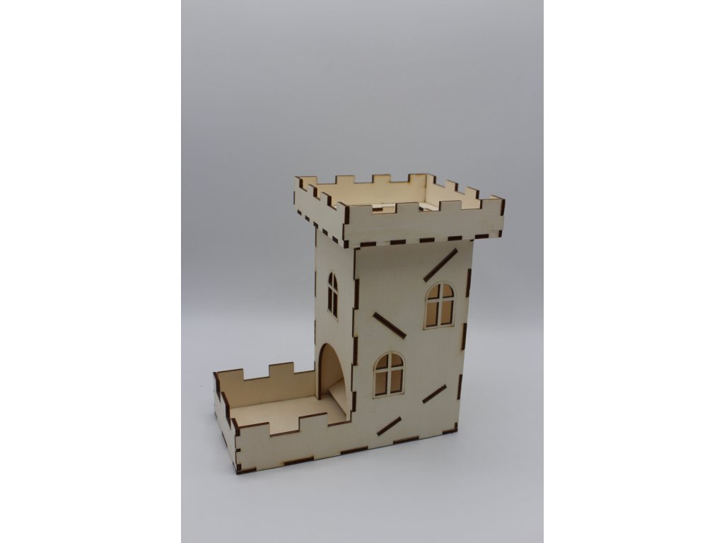 Rozměr: výška 18cm, šířka 16,5cm.Kostky vhodíte do vrcholu věže a ty poté vypadnou dole v ohrádce. Zabrání se tak hledání kostek po zemi.