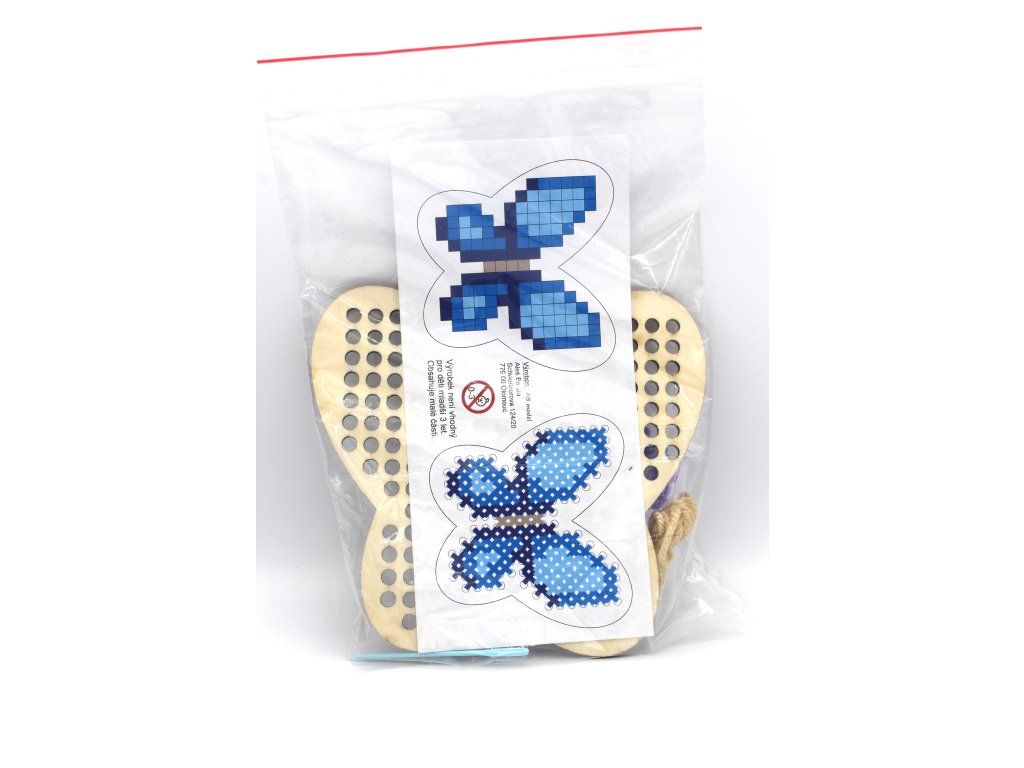 Balení obsahuje dřevěnou šablonu, vlnu, plastovou jehlu.