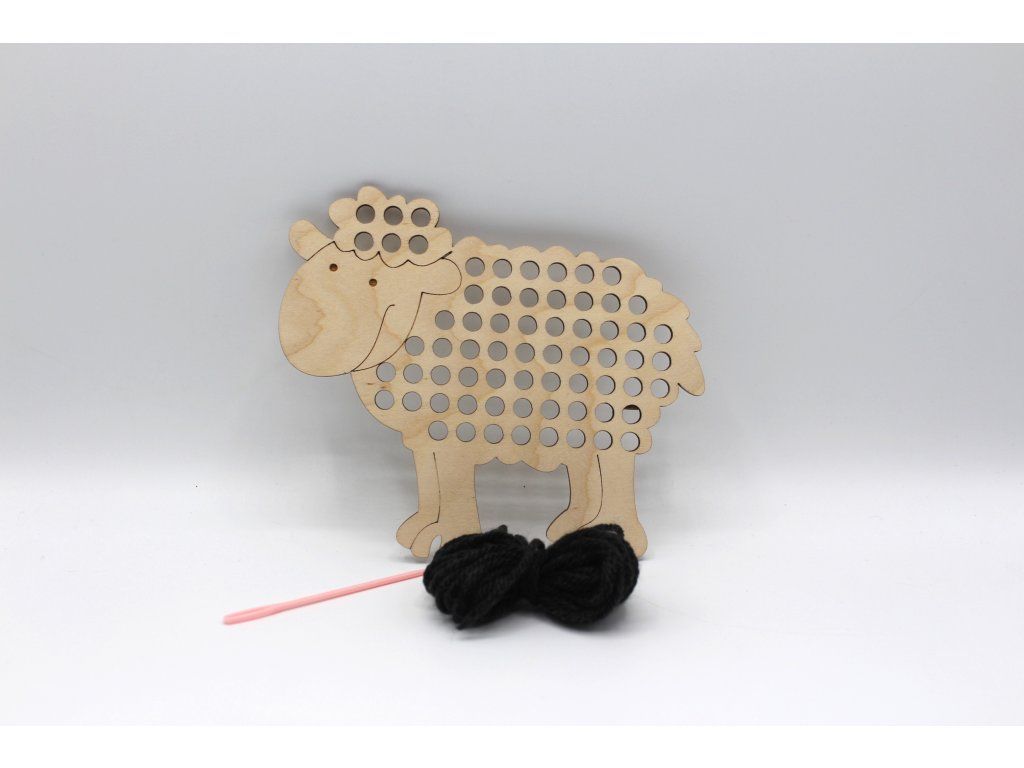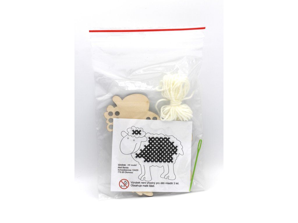 Balení obsahuje dřevěnou šablonu, vlnu, plastovou jehlu.