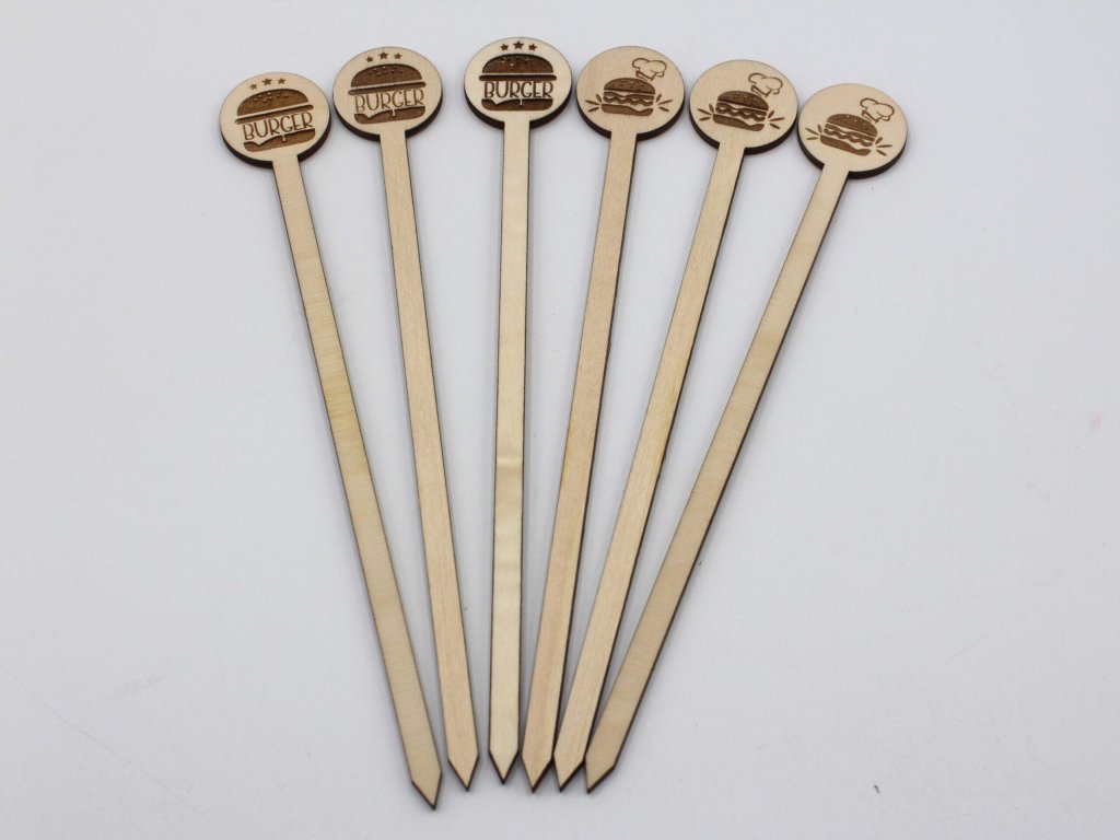 Pozvedněte Vaši grill párty na vyšší úroveň. Ozdobte burgery zápichem.Délka bodce 15 cm, kulaté logo 2,5 cm. Balení po 6 kusech.
